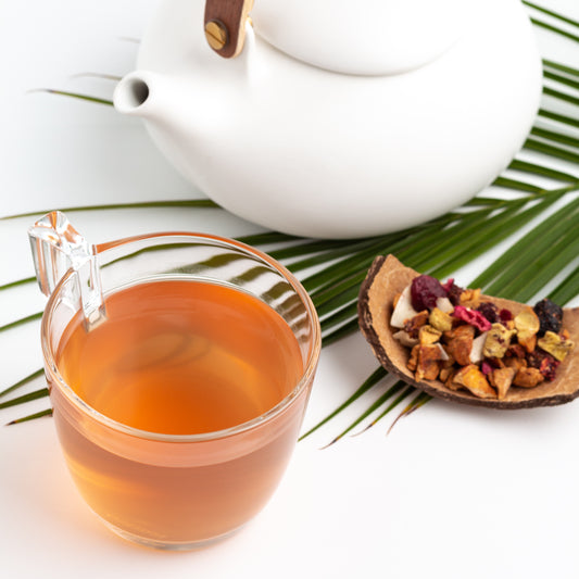White Peony tea leaves combine with mango, apple, and pear for a delicate, fruity tea with tons of flavor. Mango Pear is delicious hot and also makes an excellent iced tea.
