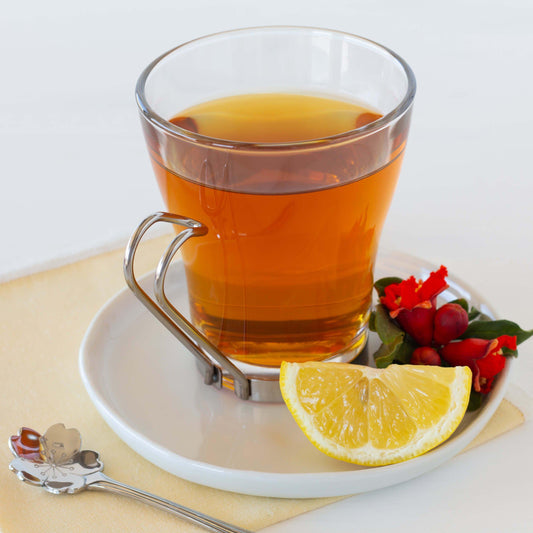 Rose Petal Raspberry blends rose petals, raspberry, hibiscus, lemon peel, rosehips, and apple for a silky, aromatic tea that's fruity, tart, and refreshing. While this herbal infusion is excellent hot, it truly shines when served as an iced tea.
