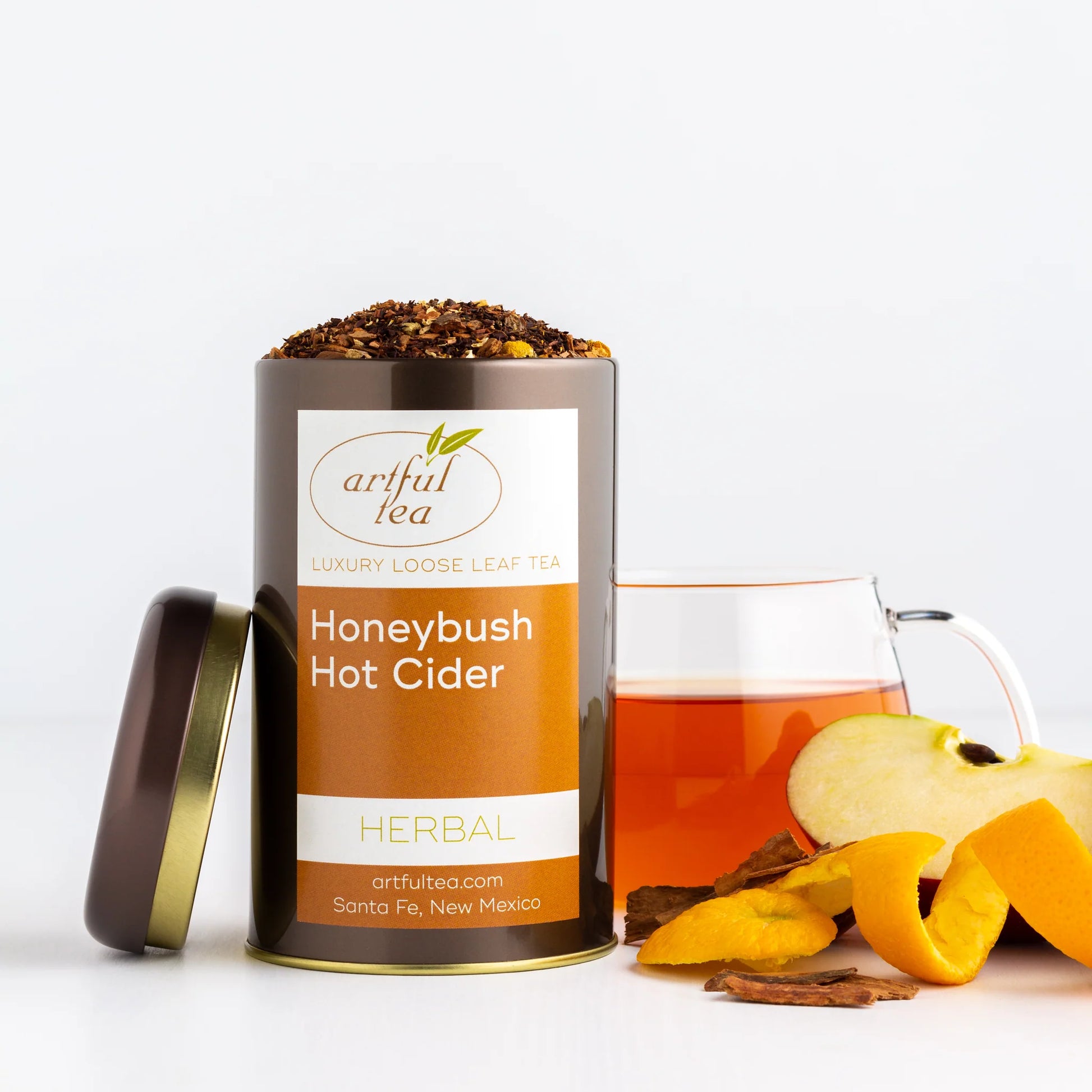- Honeybush Hot Cider combines chamomile with rooibos, apple, cinnamon, orange peel, and licorice root for a sweet, spiced herbal blend.