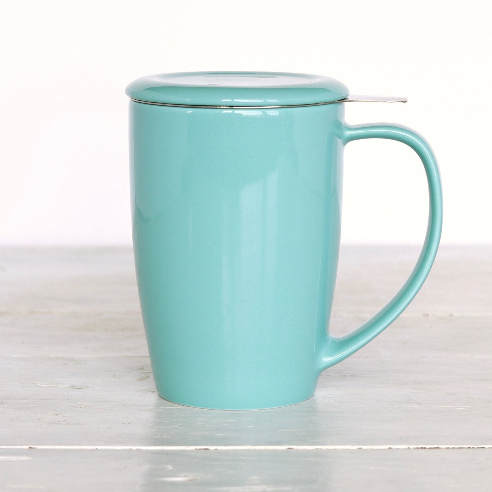 This all-in-one mug includes everything you need to brew up the perfect cup of tea. Each ceramic mug comes with a fine mesh stainless steel infuser and a ceramic lid, which also doubles as a saucer to rest the infuser on when the tea is done steeping. The mug holds 15 oz. and measures approximately 5x3.5x3.5 inches. Dishwasher safe.