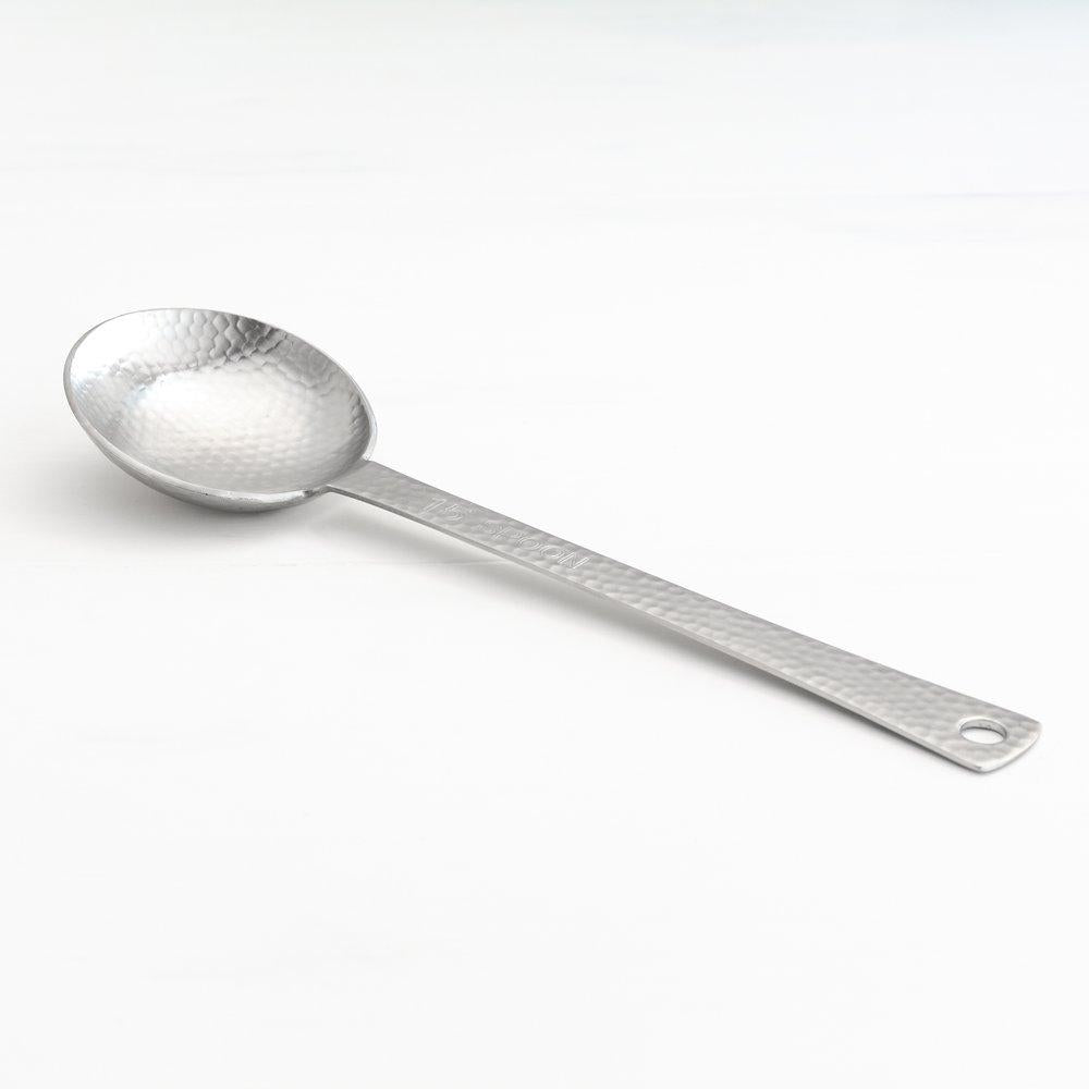 This fine stainless steel pieces from our Tsubame Collection is handcrafted in Japan with a traditional tsuchime (hammered) finish. Each piece is individually made by professional craftspeople in Tsubame City in the Niigata Prefecture, so no two will be exactly alike. The tablespoon holds a perfect 15 ml and measures 7-1/8” L x 2” W.